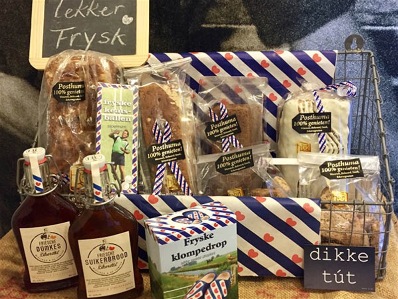 Trakteren op lekkers uit Fryslân? Kies voor een cadeaupakket van de bakkers van Posthuma! Afhankelijk van de grootte van het pakket, bestaat het cadeaupakket uit Friese specialiteiten zoals Sûkerbôle, dumkes, friese koek en nog veel meer lekkers. Een cadeaupakket per post laten versturen? Een gepersonaliseerd pakket? Of interesse in meerdere relatiegeschenken? Neem gerust contact op met Nyncke Posthuma via nyncke@puurposthuma.nl