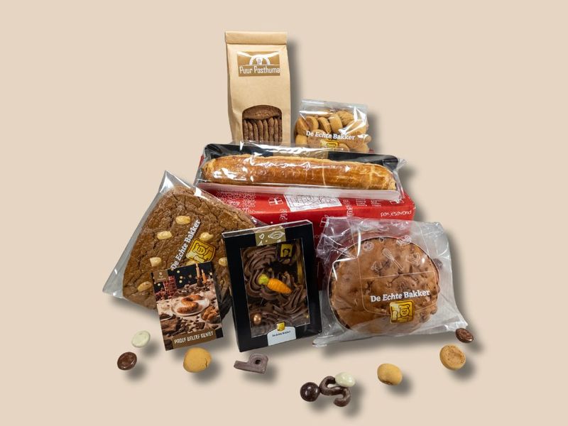 Sinterklaas geschenkdoos gevuld met - Speculaasjes - Pepernoten - Roomboter amandelstaaf - Speltulaasbrok - Chocoladeletter klein - Pepernotenbrood
